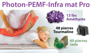 Le Photon-PEMF-Infra mat Pro (™) utilise le rayonnement thermique par les pierres précieuses pour canaliser la chaleur qui pénètre profondément dans les muscles et les tissus. Vous en ressentirez les bienfaits en quelques minutes.